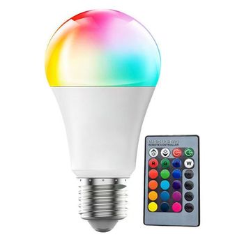 Bombilla Led Rgb de siete colores, bombilla de luz de ambiente colorida regulable con cambio de color automático con control remoto, atenuación de 16 colores